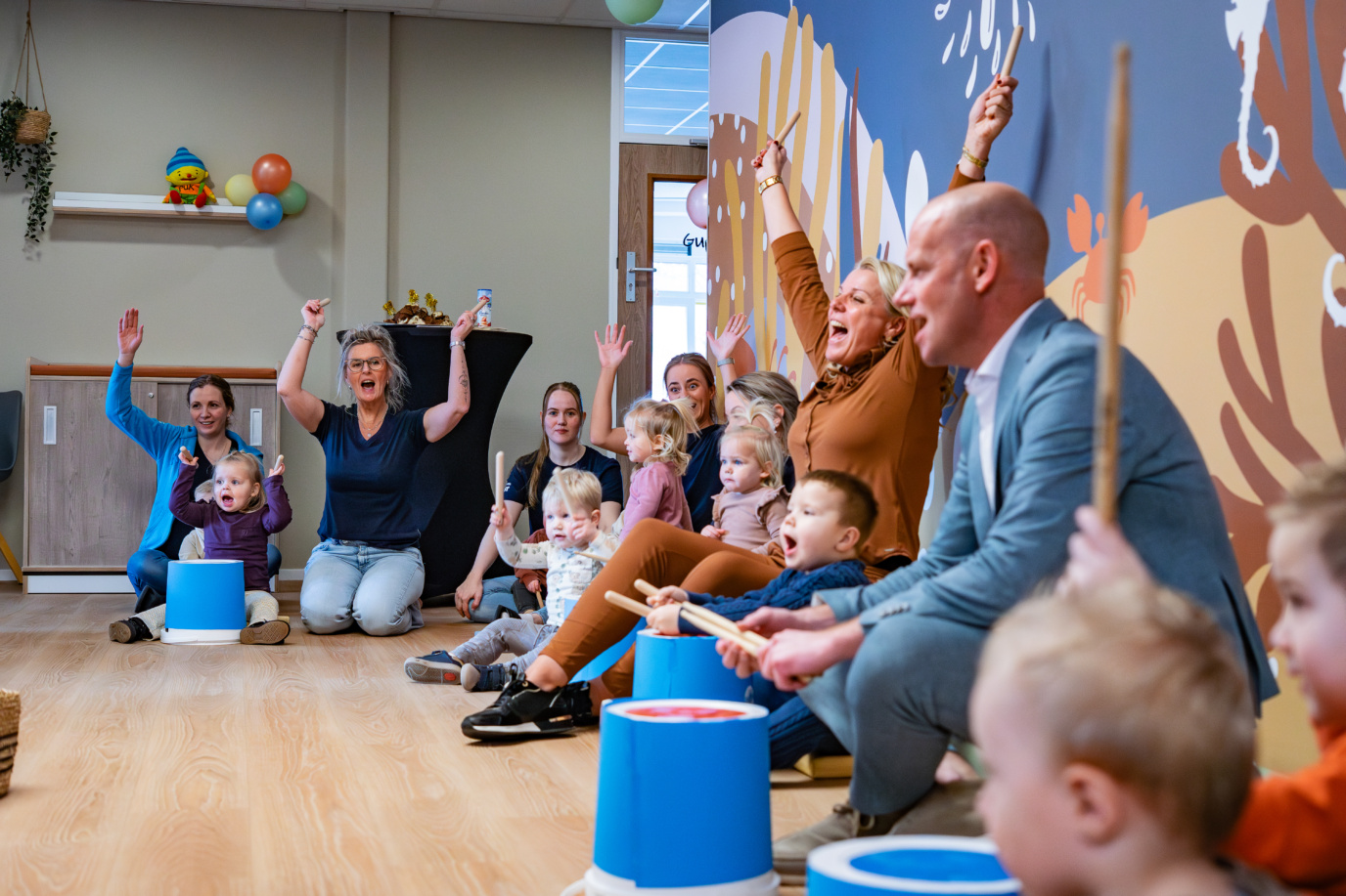 Met een vrolijk tromgeroffel gaven de peuters het officiële startsein. Ze maakten hun eigen muziek, deden enthousiast mee en zorgden zo voor een moment dat precies bij KC Kiekaboe past.